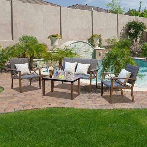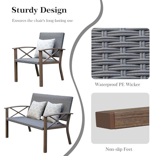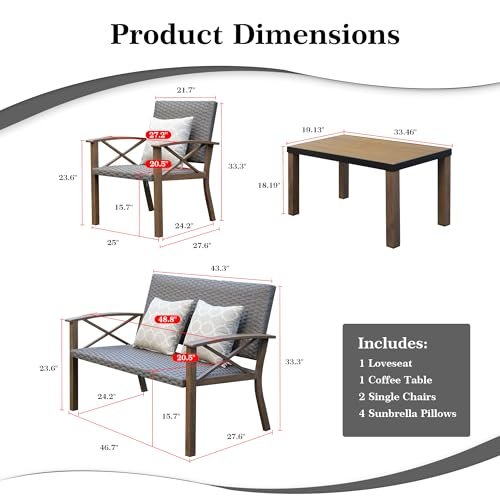 Domi Aluminum Patio Furniture Set, 4-Piece Modern Conversation Set with Cotton Padding Backrests and Seats, Outdoor Sectional Metal Sofa Set with 5.5 Inch Cushion and Coffee Table for Balcony, Garden