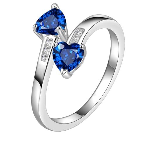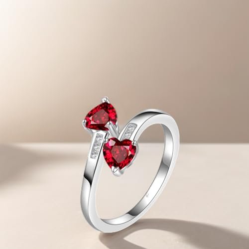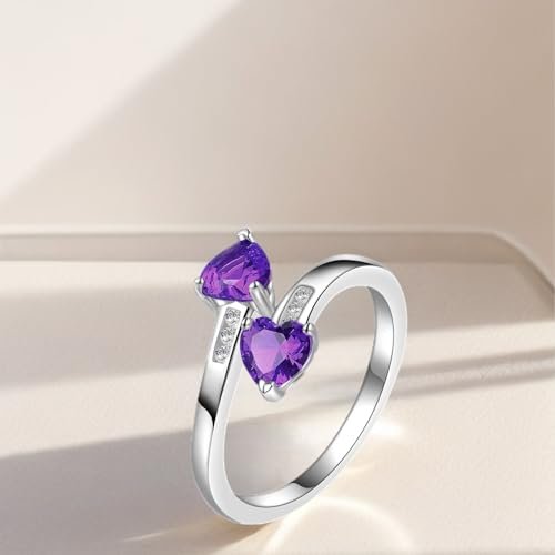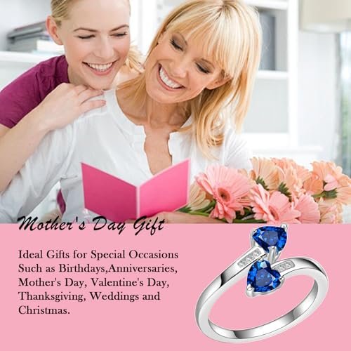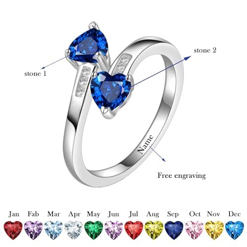 DONGHU Personalized Mothers Double Heart Birthstone Ring For Women 10K/14K/18K Gold Custom Mothers Name Rings Family Birthstone Rings for Grandma Mom Wife