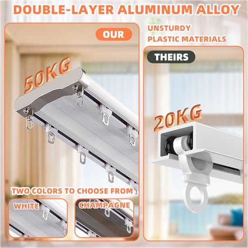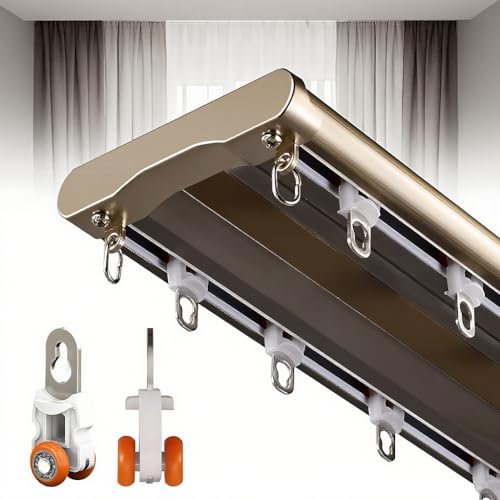 Double Curtain Track Ceiling Mounted, Heavy Duty Aluminum Curtain Slider for Bedroom/Living Room/Window/Hotel (Champagne,5m(16.4ft))