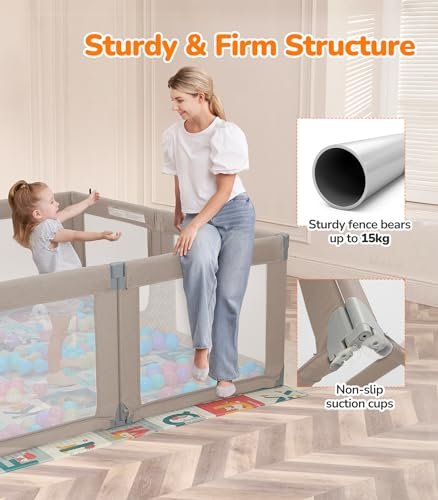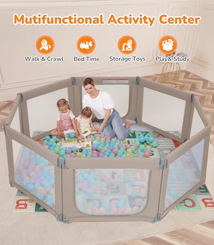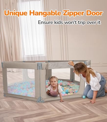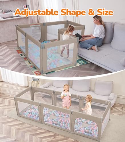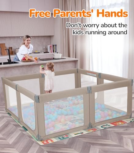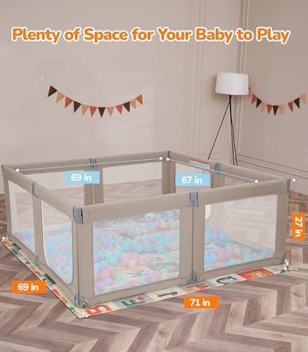 Dripex Foldable Playpen, Extra Large Baby Playpen, 71″×69″ Play Yard for Baby, Collapsible Play Pen for Babies, Baby Fence with Breathable Mesh, Indoor & Outdoor Kids Activity Center, Khaki