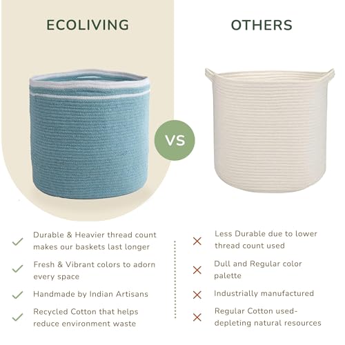STYLISH AND DURABLE- The Eco-living Recycled Cotton Basket is not only stylish but also durable. This ensures that it can hold even the heavy items, making it perfect for storing blankets and other bulky items.