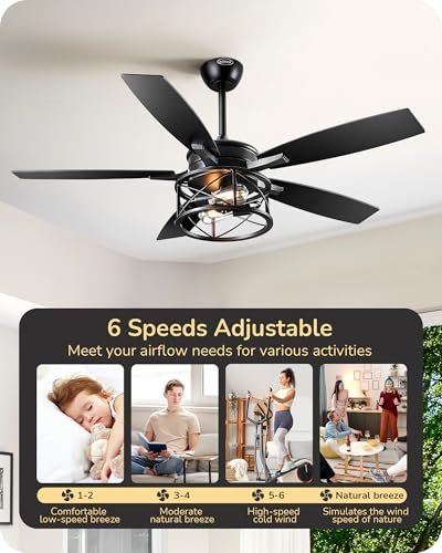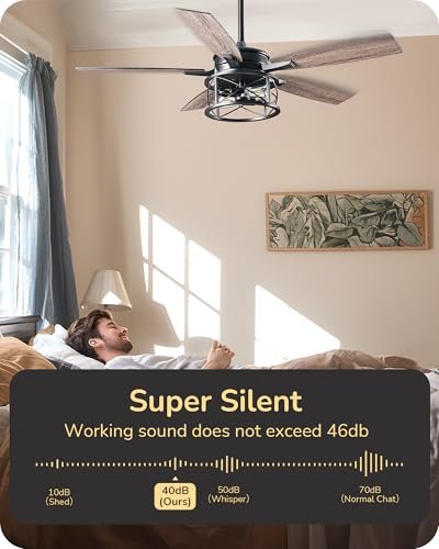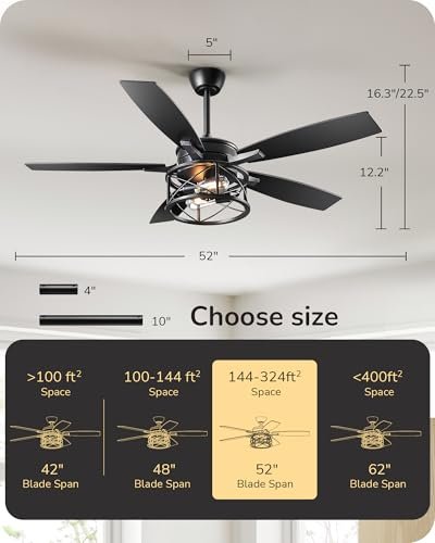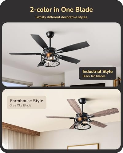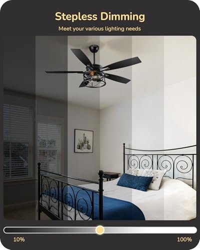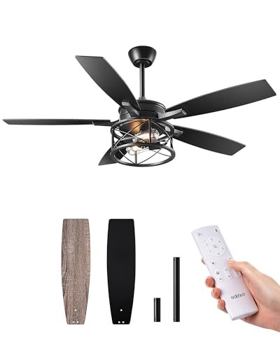 EDISHINE 52″ Black Farmhouse Ceiling Fans With Lights, Remote Control, Dimmable, Reversible DC Motor, 5 Wooden Blades Rustic Indoor/Outdoor Ceiling Fan for Living Room Bedroom Porch