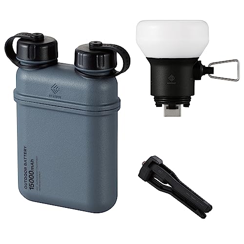ELECOM NESTOUT Portable Charger and Lamp, 15000mAh Outdoor Battery Power Bank, 32W USB-C Fast Charging PD, Battery and Light for Camping, 300 Lumen LED Lantern Lamp-1 – Blue Gray
