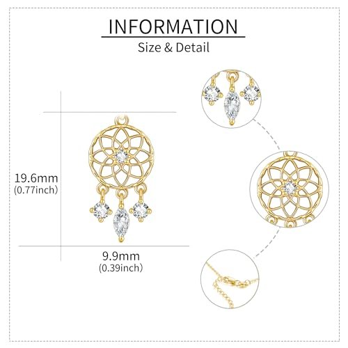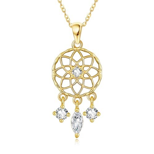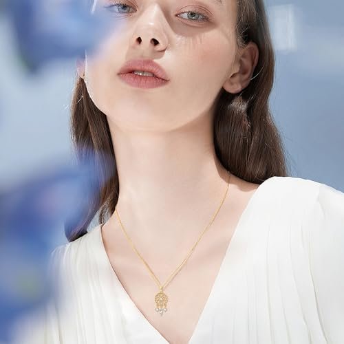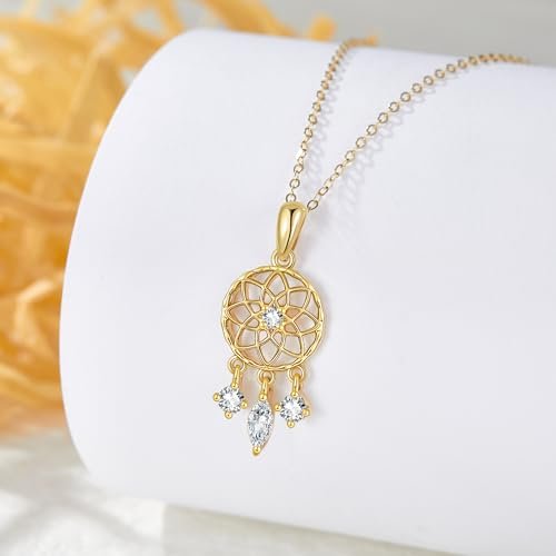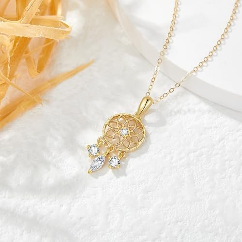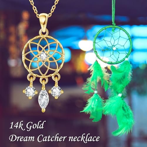 ELFRONT 14k Gold Dream Catcher Necklace 14kt Yellow Gold Dream Catcher Pendant Jewelry Gifts for Women