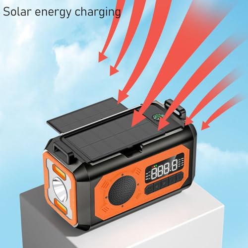 Emergency Radio, Multi Function 12000mAh Hand Crank Solar Radio AM FM WB Battery Powered with Cell Phone Charger SOS Compass Flashlight Reading Lamp Orange