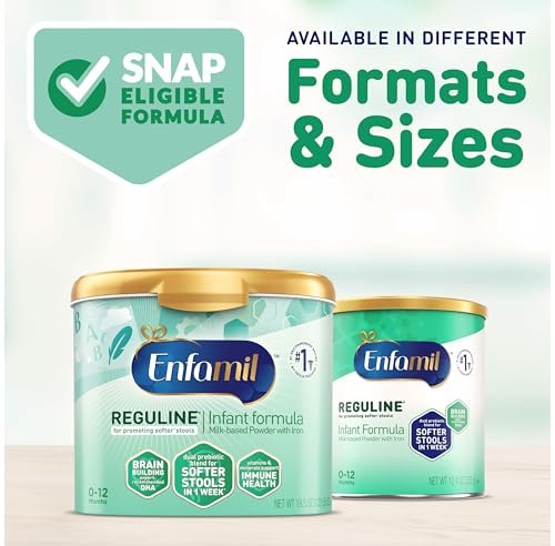 Enfamil Reguline Baby Formula, Milk-Based Infant Nutrition, Dual Prebiotics for Soft, Comfortable Stools within 1 Week of Use, Omega-3 DHA for Immune Support, Reusable Powder Tub, 78 Oz