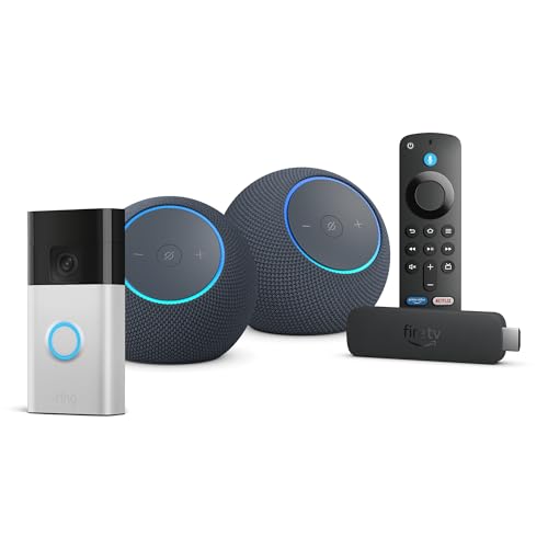 Our latest Fire TV stick, Echo Dot Max, and Ring Battery Doorbell devices bundled together to deliver advanced 4K streaming with rich room-filling sound, all while you keep an eye on what matters most.