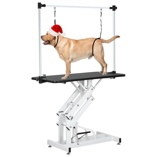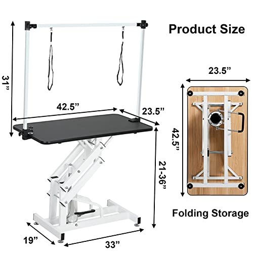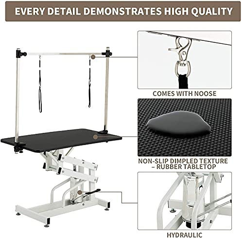 EPIKOIB Hydraulic Pet Dog Grooming Table for Large Dogs, Heavy Duty Grooming Table with Adjustable Arm Noose, Maximum Capacity Up to 330 lbs, 42.5”/Black