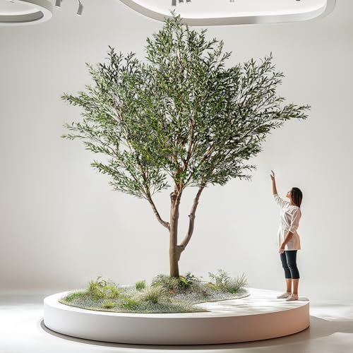 Erimda 11.5FT Artificial Olive Tree Tall Faux Silk Plant Tall Faux Olive Tree with Natural Wood Trunk & Lifelike Fruits Fake Potted Tree or Home Office Decor
