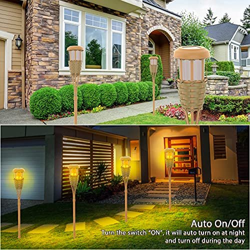 Evelynsun Solar Outdoor Lights, Solar Torch Lights Outdoor Flickering Flame, Outdoor Decorations for Patio Path Yard – 6 Pack