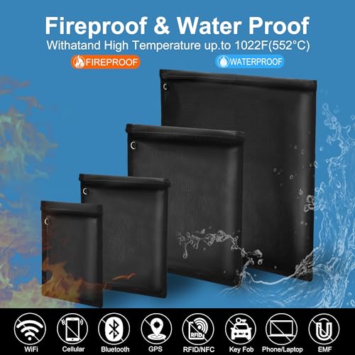 Faraday Bag 4 Pack – Waterproof & Fireproof Signal Blocking Pouch for Laptop, Tablet, Phone, Car Key – Anti-Theft & Anti-Tracking Faraday Cage Sleeve