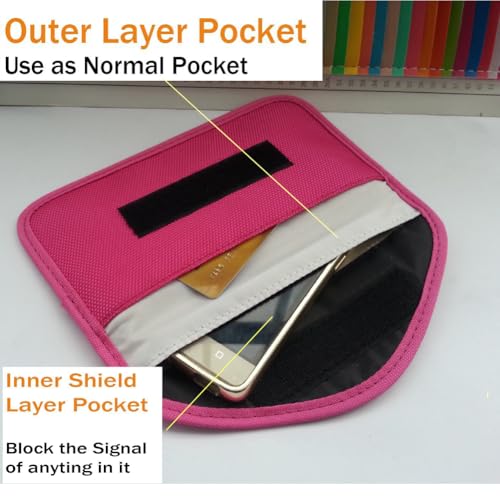 Faraday Bag RFID Signal Jammer Blocking Holder Shield Pouch Cage Box Wallet Anti-Theft Fob Case for Cell Phone Privacy Protection and Car Key FOB Anti-Hacking (Rose Red)