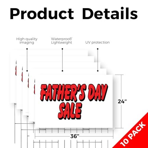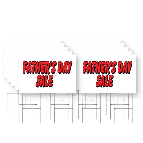Father’s Day Sale Yard Sign 10 Pack of 24 Inch x 36 Inch Double Sided Weatherproof Heavy-Duty Plastic with Stake | Special Offers, Retail Promotions, Gift Ideas | Made in USA