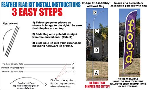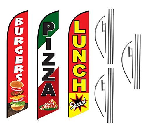 FFN Burgers, Pizza, & Lunch Special Outdoor Advertising Feather Swooper Banner Flag Kit Sign with Ground Stake & Flagpole. Signs for Pizzerias
