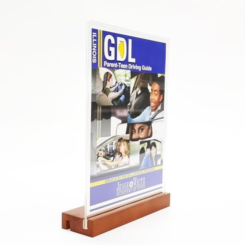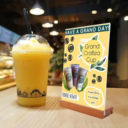 FixtureDisplays® 24PK 5×7 Acrylic Picture Frame Sign Holder Portrait Slant/Vertical Design Wood Base, Tabletop Signage Display 10174-5×7 L-NF
