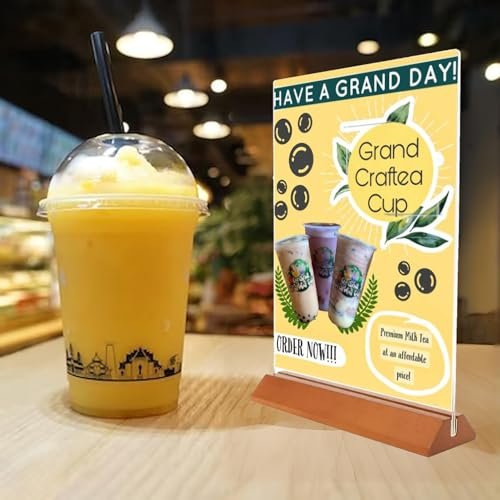FixtureDisplays® 24PK 8.5X11″ Acrylic Sign Holder T Shape Clear Picture Frame Wood Base Coutertop Letter Size Literature Display 10177-8.5×11 T-New-NF