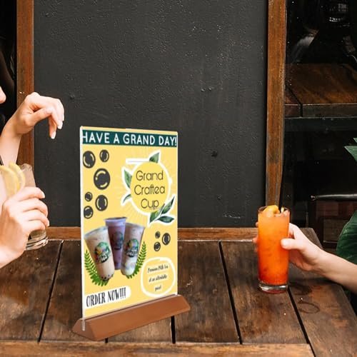 FixtureDisplays® 24PK 8.5X11 Acrylic Sign Holder T Shape Clear Picture Frame Wood Base Coutertop Letter Size Literature Display 10177-8.5X11 T-NF