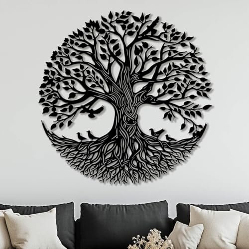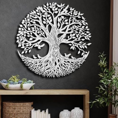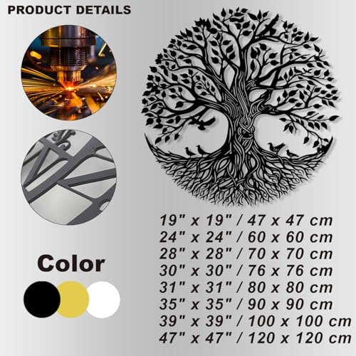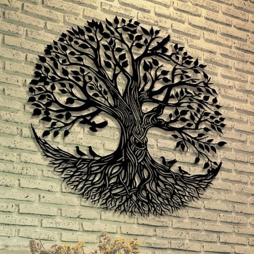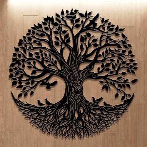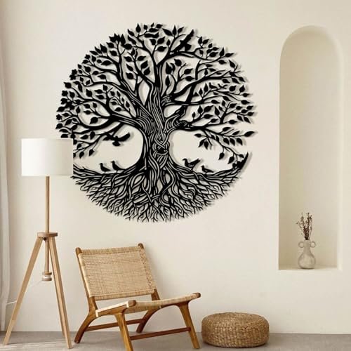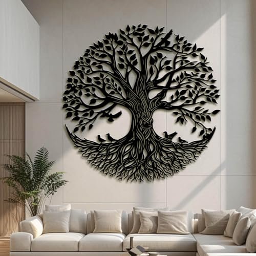 Flewfar Tree of Life Metal Wall Art, Metal Tree of Life Wall Decor, Family Tree Wall Art for Living Room, Indoor Outdoor Decoration, Large Tree of Life Metal Wall Art (Black, 30″ x 30″ / 76 x 76cm)