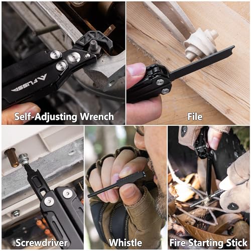 FLISSA Multitool Wrench, Gift for Men, 16-IN-1 EDC Multi-tool with Self-Adjusting Wrench, Stainless Steel Pocket Multi Tool with Knife, Screwdriver Bits, Saw, File, Ideal for Camping, Outdoor