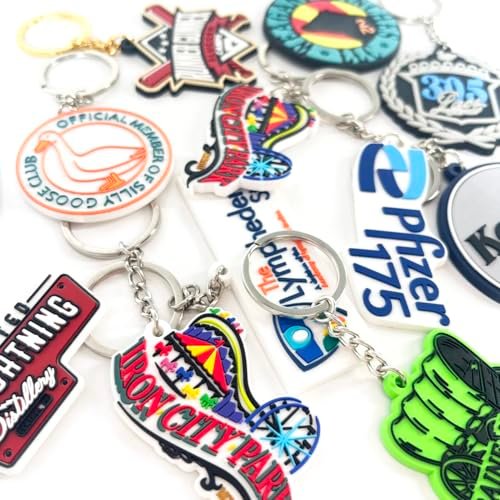 FLIXLEAP 400 Pack Custom Keychains in Bulk with Company Logo or Text 3D PVC Rubber Key Tag Ring Promotional Items for Event Tradeshow