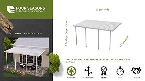 Four Seasons Outdoor Living Solutions TWV Series 20X12ft High-Grade Aluminum Attached Patio Cover Awning, 4 Posts, 20 Lb. Snow Load, White