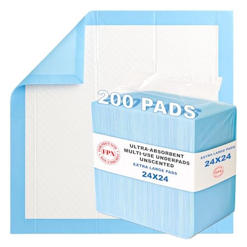 FPN Disposable Underpads – 200 Pack | 24 x 24 inch ,Super Absorbent, Leakproof, Quick Drying,Versatile Bed Chux Pads for Kids, Adults, Elderly & Pets | Ideal for Incontinence Care & Puppy Training