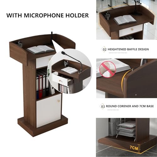 Free-Standing Acrylic Metal Podium Stand,Podium Stand Wood, Solid Wood White Podium Pulpit for Church, Church Lecterns & Podiumsw with Microphone Holder, Lecter