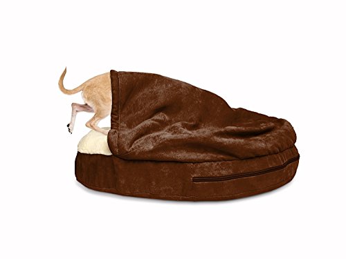 SLEEP SURFACE: The interior sleep surface is lined with insulating sherpa fleece, while the hooded blanket exterior features easy-care micro suede; both fabrics are soft-to-touch and serve to suit your pet’s desired form of comfort