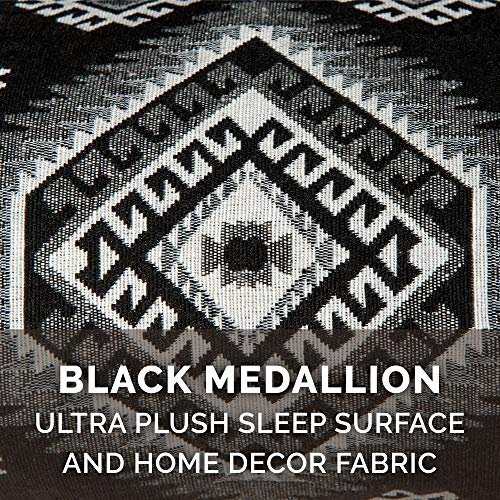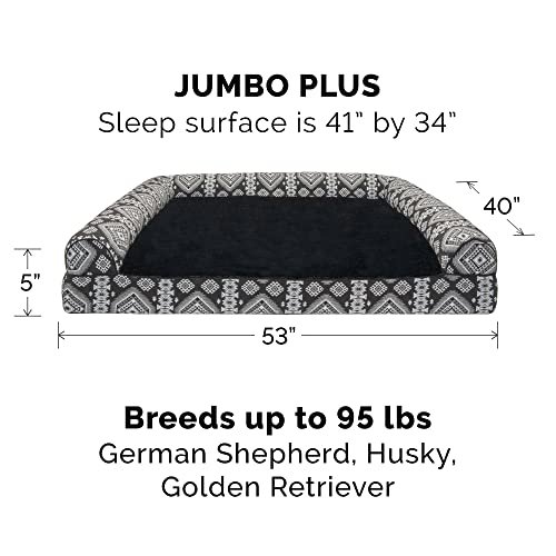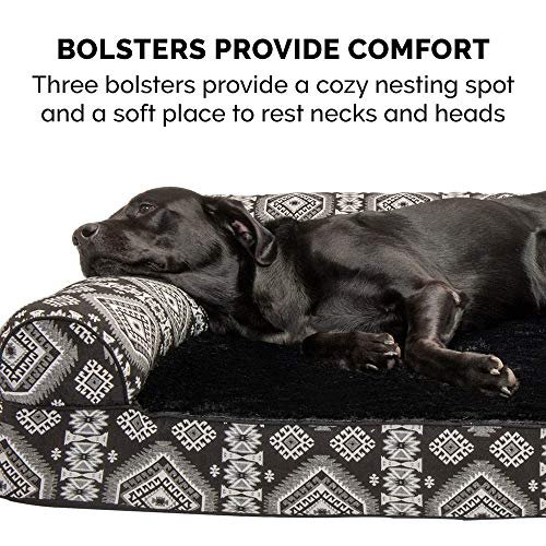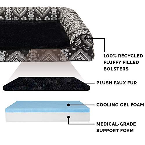 Furhaven Cooling Gel Dog Bed for Large Dogs w/ Removable Bolsters & Washable Cover, For Dogs Up to 125 lbs – Plush & Southwest Kilim Woven Decor Sofa – Black Medallion, Jumbo Plus/XXL