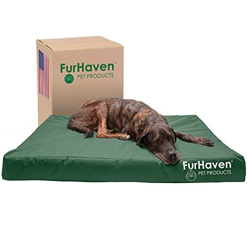 Furhaven Water-Resistant Memory Foam Bed for Large Dogs w/ Removable Washable Cover, Up to 125 lbs – Indoor/Outdoor Logo Print Oxford Polycanvas Mattress – Forest, Jumbo Plus/XXL, 53.0″ x 40.0″ x 5.0″