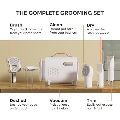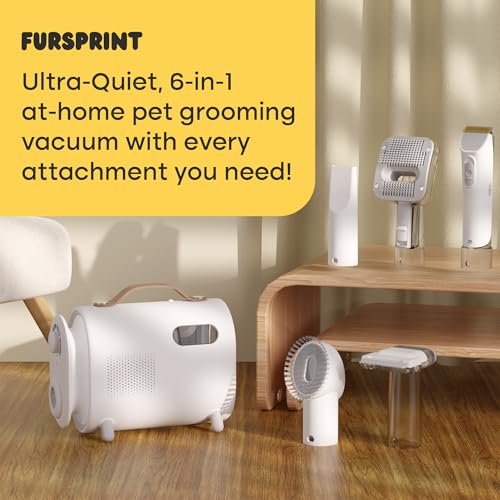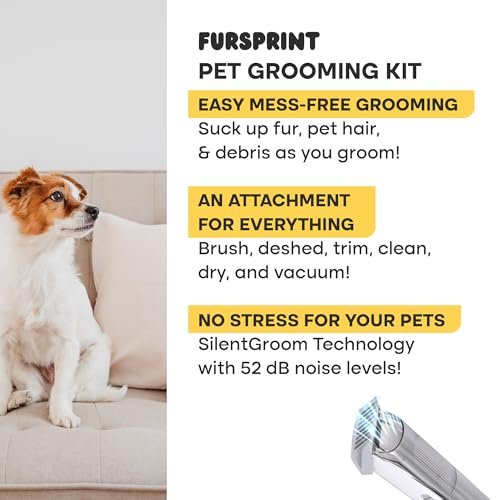 Fursprint Pet Grooming Vacuum Kit – Super-Quiet Dog Hair Vacuum Groomer with Brush, Detangle, Deshed, Trim, Clean, & Dry Attachments – All You Need Pet Grooming Kit at Home