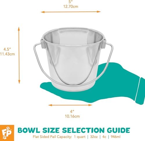 Fuzzy Puppy Pet Products Heavy Duty Stainless Steel Flat Sided Pail for Dog, Cat and Critter Crates & Cages | 1 Quart (PN: Flat Pail-1)