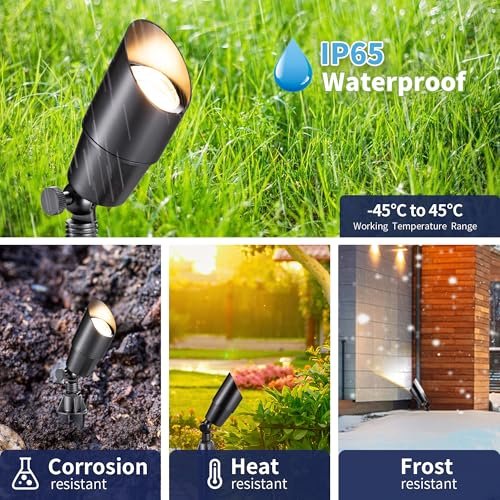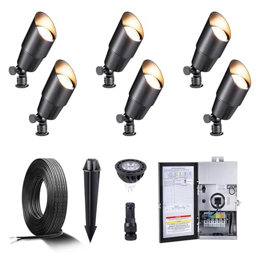 Gardenreet Black Brass Low Voltage Landscape Spotlights(6-Pack) Kit 12V LED with Low Voltage Transformer 150W & Mechanical Timer & 100FT Wire & 30Pack Connectors for Outdoor House Garden Patio