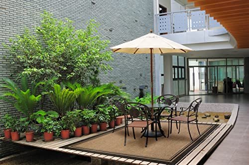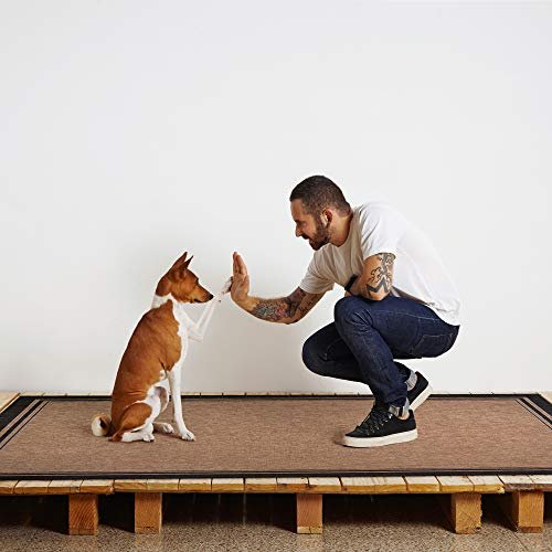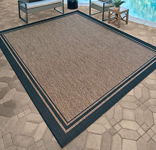 Gertmenian Indoor Outdoor Classic Flatweave Area Rug, Stain & UV Resistant Carpet, Deck, Patio, Poolside & Mudroom, 8×10 Ft Large, Border, Black Tan, 21515