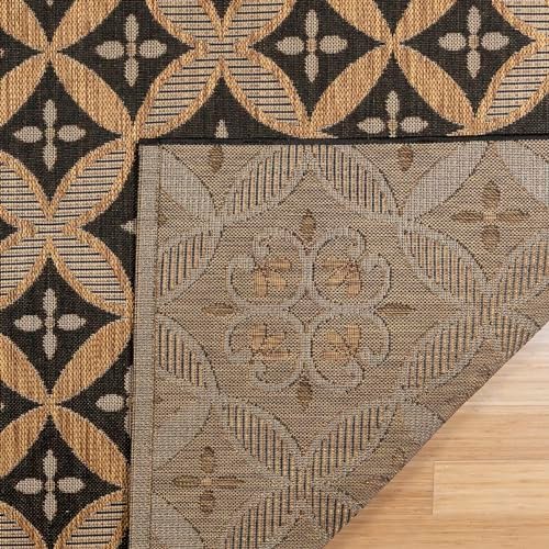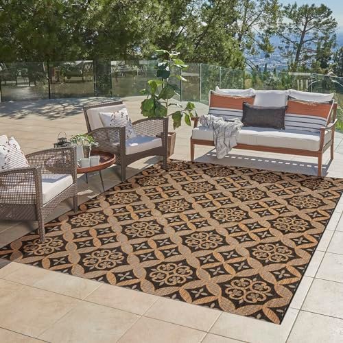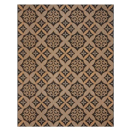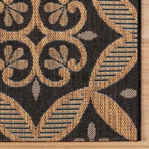 Gertmenian Indoor/Outdoor Flatweave Area Rug – 8×10 Large, Stain & UV Resistant, Ideal for Deck, Patio, Poolside, Mudroom – Niala Floral Chestnut, Black, 25437