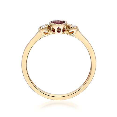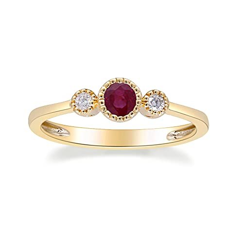 Gin & Grace 10K Yellow Gold Mozambique Genuine Ruby Ring with Diamonds for Women Holiday Gifts | Ethically, Authentically & Organically Sourced (Round) shaped Ruby hand-crafted jewelry for her | Ruby Ring for Women Holiday Gifts