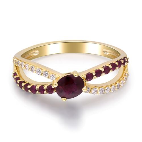 Gin & Grace 14K Yellow Gold Mozambique Genuine Ruby Ring with Diamonds for women | Ethically, authentically & organically sourced (Oval) shaped Ruby hand-crafted jewelry for her