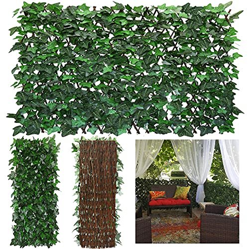 GLANT Expandable Fence Privacy Screen for Balcony Patio Outdoor,Decorative Faux Ivy Fencing Panel,Artificial Hedges (Single Sided Leaves) (4, Green-Ivy)