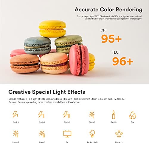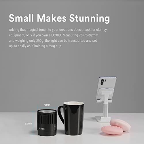 Godox LC30Bi Tabletop LED Light, Mini Bicolor LED Studio Light with 28 200 lumens, 3200K-6500K CRI 95+/TLCI 96+, 11 FX Effect, 0-100% Dimming, for Small Products Shooting and Tabletop Live Streaming