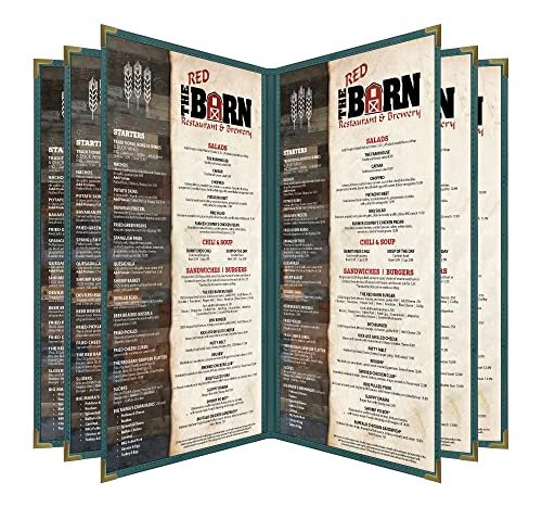 Goodsmart Pajco Style Restaurant Menu Covers – Pack of 10, Side-Loading Menu Holders, Single Stitched Edge, Clear Vinyl Menu Sleeves, Leatherette Trim, Gold Corners, Green, 10 View (8.5″ x 14″)