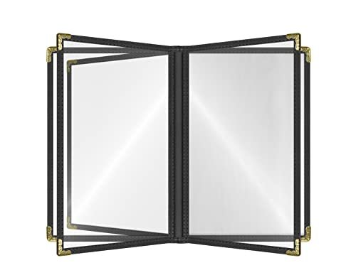 Goodsmart Restaurant Menu Covers – 25 Pack Black 10-View 8.5″ x 14″ Cafe Menu Holders, Side-Loading Vinyl Covers with Clear Sleeves, Plastic & Leather-Style Menu Covers with Gold Corners