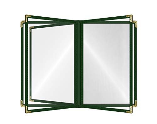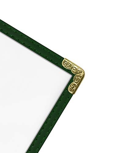 Goodsmart Restaurant Menu Covers – 25 Pack Green 10-View 8.5″ x 11″ Cafe Menu Holders, Side-Loading Vinyl Covers with Clear Sleeves, Plastic & Leather-Style Menu Covers with Gold Corners