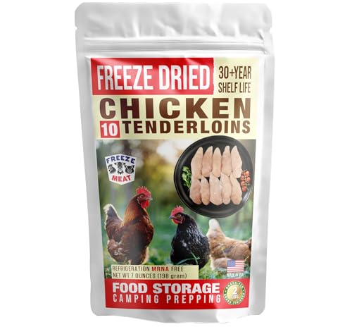 Grass Fed Freeze Dried Chicken Tenderloins GRASS FED, 10 Count, 30+ Year Shelf Life | Family Pack | Equivalent to 2 lbs.