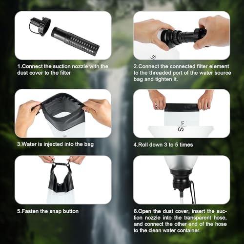The Water Filter System,maintain the Ultrafiltration Membrane quickly and easily for longer life.Simply fill the water bag with water, attach the cover and shake free the debris. No backflushing and no clumsy tools. Simple shake or swish the Ultrafiltration Membrane in the water.