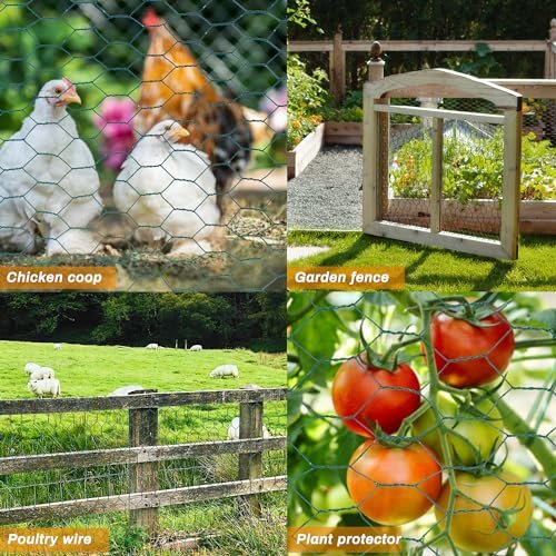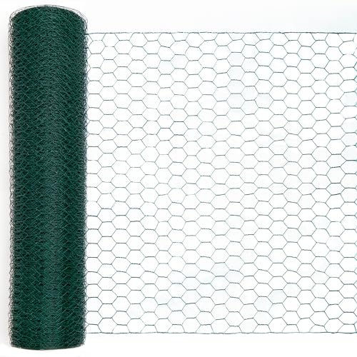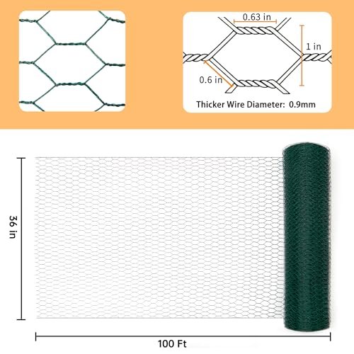 Green Chicken Wire 36 inch(H) x 100 ft(L), Anti-Rust Hexagonal Galvanized Metal Garden Netting for Floral Arrangements, PVC Coated Chicken Wire Coop for Crafts Plant Protector Pet Rabbits Fencing