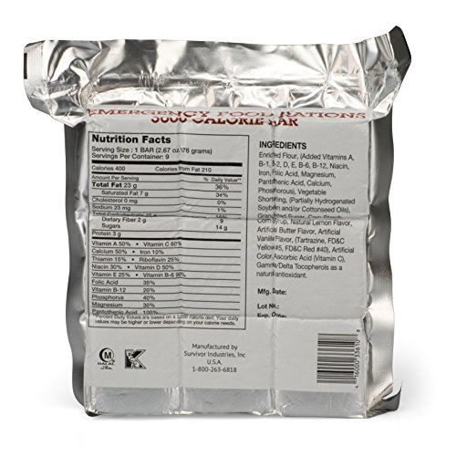 Grizzly Gear Emergency Food Rations- Case of Ten 3600 Calorie Vanilla Bar – 30 Day, 4 Week Value Supply For Disaster, Hurricane – Less Sugar, More Nutrients – 5 Year Shelf Life