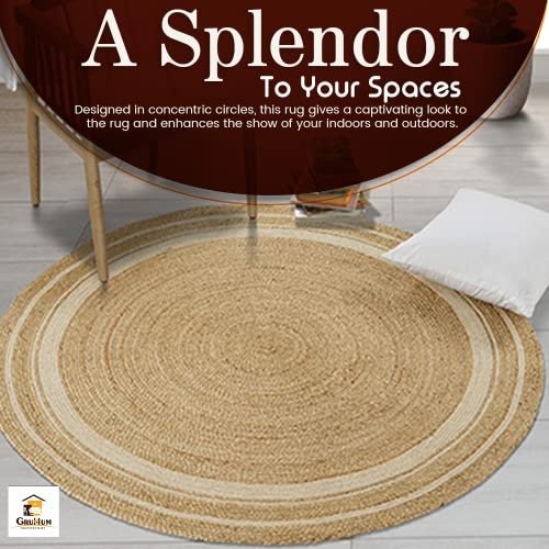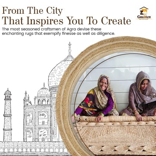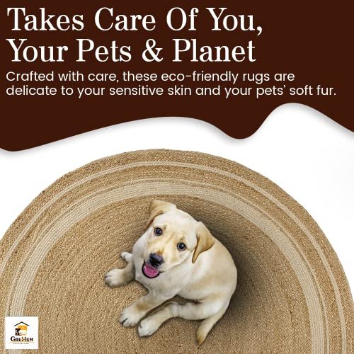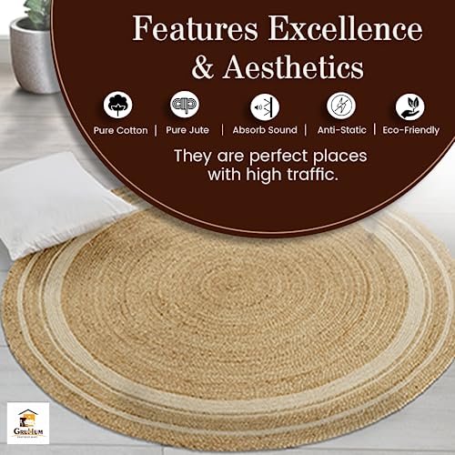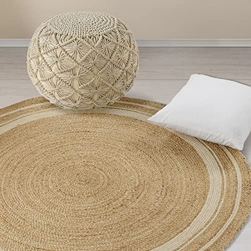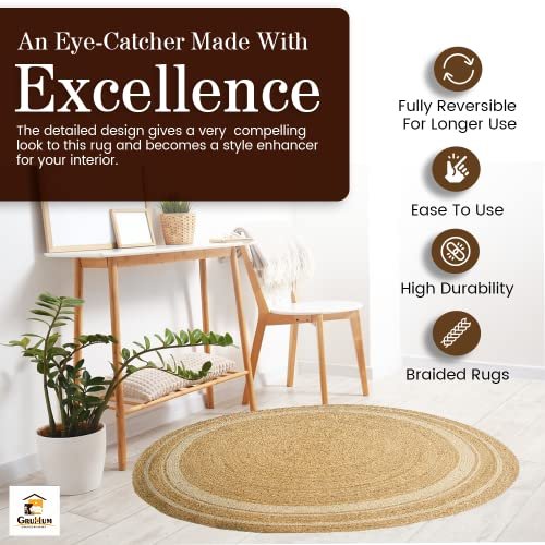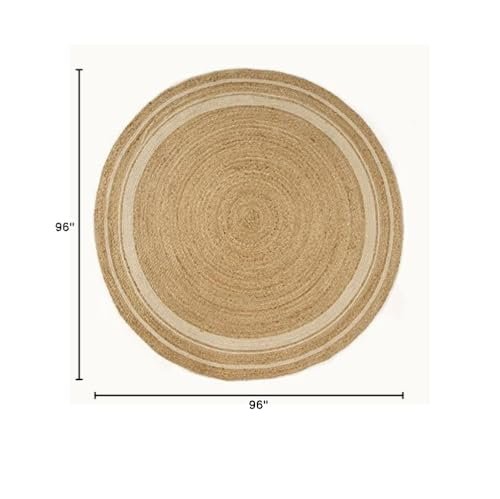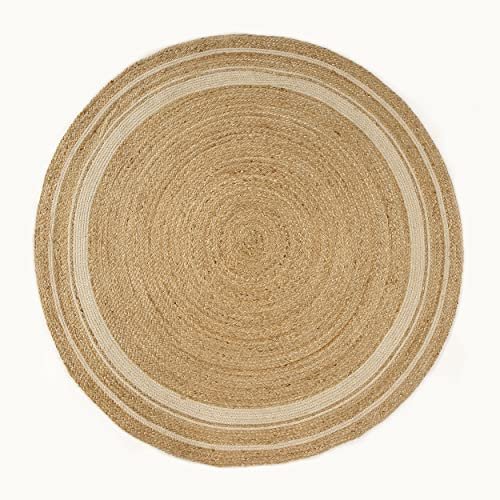 GRUHUM 8′ ft Round Jute Cotton Area Rug – Natural Fiber Handmade Boho Farmhouse Jute Area Rug Soft Braided Rustic Vintage Reversible Indoor Kitchen Bedroom Living Room Hallways Enterway (8ft Circle)