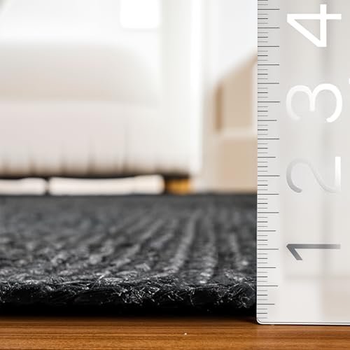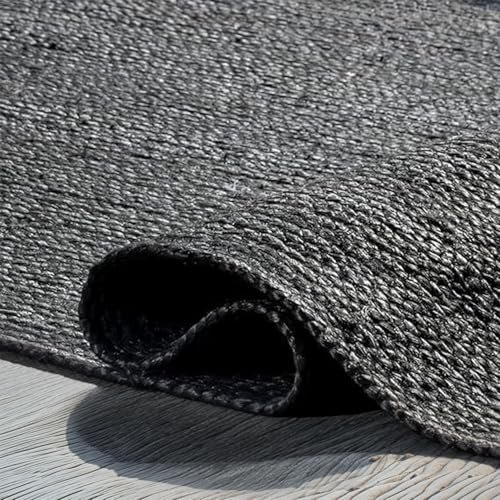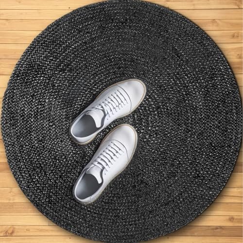 GRUHUM Black Jute Area Rug 8ft Natural Fiber Round Handwoven Boho Farmhouse Rustic Vintage Soft Braided Reversible EcoFriendly Rugs for Indoor Kitchen Bedroom Living Room Hallways (8′ ft Round)