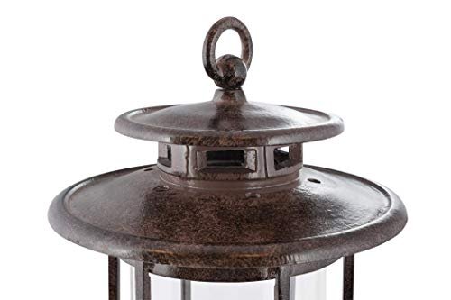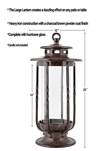 H Potter Large Decorative Hurricane Lantern Glass Candle Holder Cast Iron Rustic Indoor and Outdoor Light with Powder Coat Finish Centerpiece for Home Wedding Farmhouse Decor