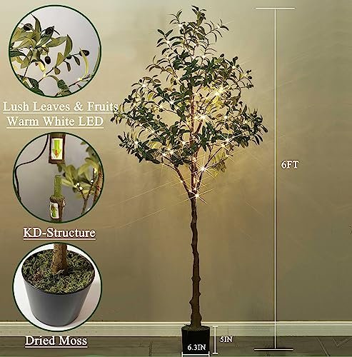Hairui Lighted Olive Tree with 300 Warm White Fairy Lights 6FT with Dimmer and Timer, Faux Greenery Tree Lights for Indoor Outdoor Home Decoration